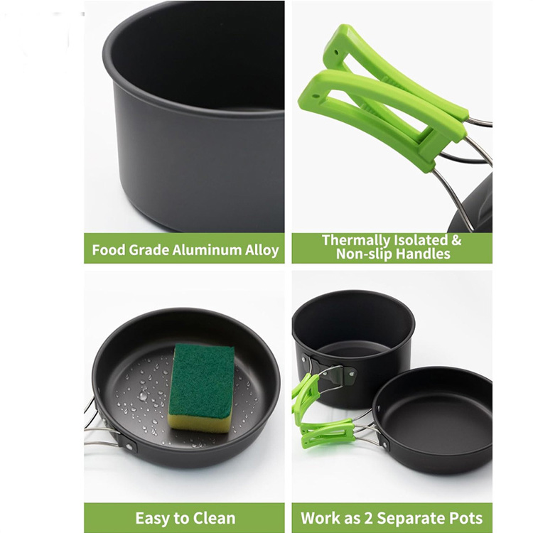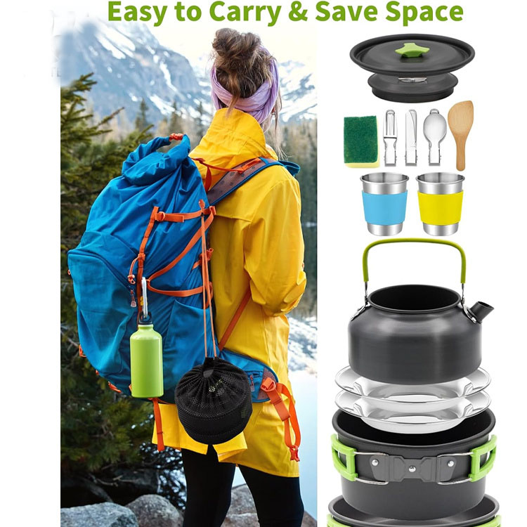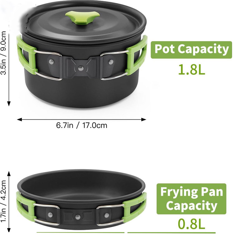 Изработен од врвна алуминиумска легура со нетоксични премази, садовите за готвење обезбедуваат рамномерна дистрибуција на топлина и издржуваат готвење на камперски оган, додека остануваат безбедни за подготовка на храна.