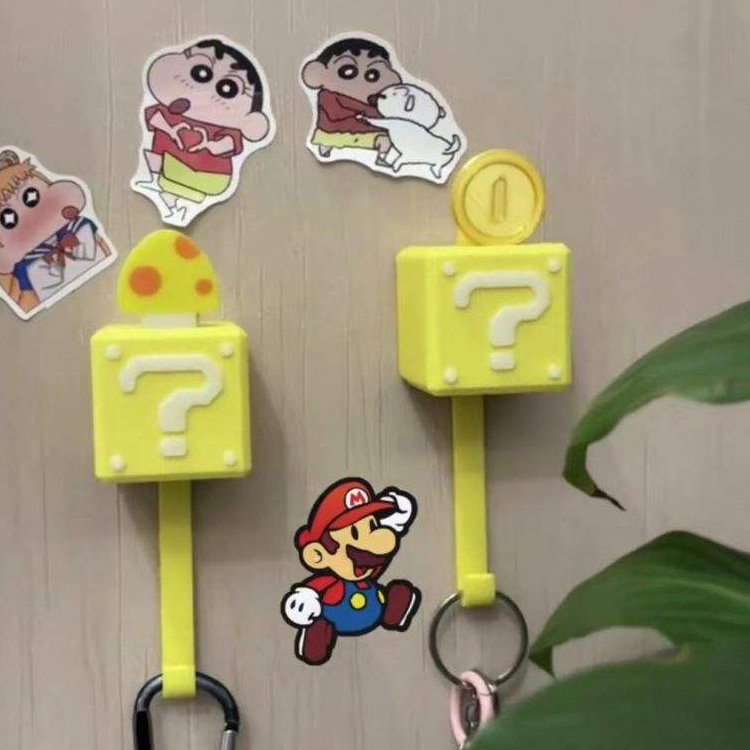 Inspired by classic video game aesthetics, this key hanger features a 3D-printed Mario-style question block and adorable character accents. It's not just a functional storage solution—it's a fun and nostalgic decoration that brings joy to any space.