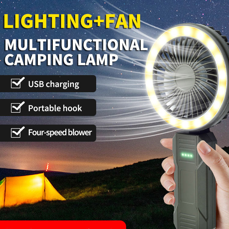 Мултифункционален мини рачен вентилатор за надворешна светилка од 4000 mAh. Останете кул и осветлен во сите ваши авантури. Оваа пренослива LED светилка за вентилатор за кампување комбинира моќен вентилатор со силно осветлување. Неговата голема батерија од 4000 mAh обезбедува долготрајна моќност на полнење преку USB. Компактниот, рачен дизајн е совршен за надворешна употреба.