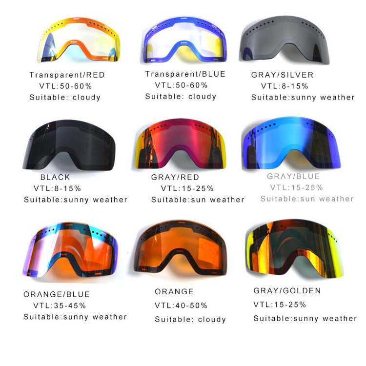 Прилагодени магнетни UV 400 Стилски очила за скијање против магла.Вашето врвно големо решение за професионални зимски спортови. Овие ски очила имаат огледални леќи против магла со прилагодена магнетна заштита од UV400. Стилскиот двослоен дизајн обезбедува неспоредлива јасност и удобност за сите авантури за скијање на снег.