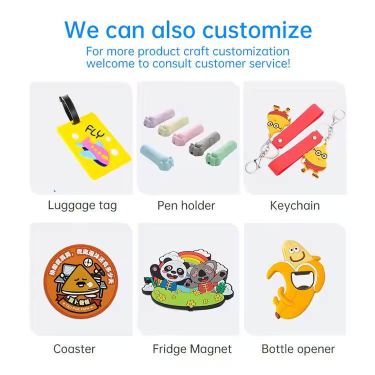 Оживувајте го вашиот бренд или идеја со целосно приспособени 2D или 3D дизајни. Без разлика дали се работи за лого, маскота или слоган, нашите меки ПВЦ привезоци се прилагодени да одговараат на вашата визија со живописни бои и високи детали.