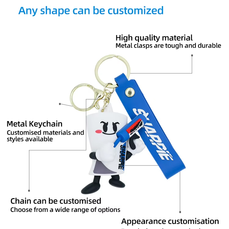 Деловен подарок ПВЦ синџир за клучеви Прилагодено 3d прилагодено лого Синџир со клучеви. Прилагодено 3D мек ПВЦ привезок за клучеви— Стилски, издржлив и целосно персонализиран со вашето лого или дизајн. Совршен промотивен подарок за брендирање, настани или подароци. Лесен, флексибилен и направен да остави траен впечаток.