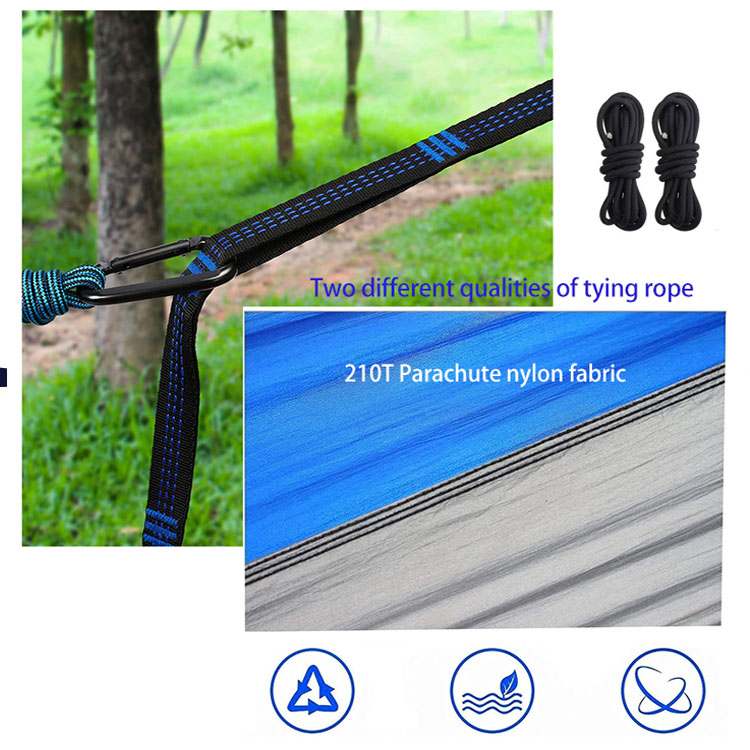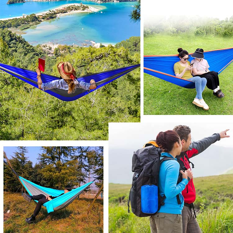 Кампување Хамак Преносна импровизирана лежалка за отворено, единечно. Оваа разновидна хамак е стручно дизајнирана за соло авантури или пријатни моменти за двајца. Неговиот лесен, спакуван дизајн го прави суштински придружник за секое патување во кампување или бегство во дворот.