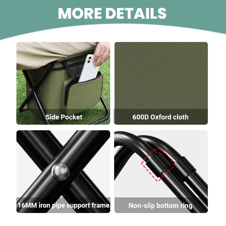 Дизајн на преклопливи табуретки за кампување Столче за риболов за патување. Овие жешко-продавани табуретки за кампување имаат современ преклоплив дизајн за врвна погодност. Совршени за патување, риболов и одмор на плажа, тие го комбинираат стилот со практична удобност.
