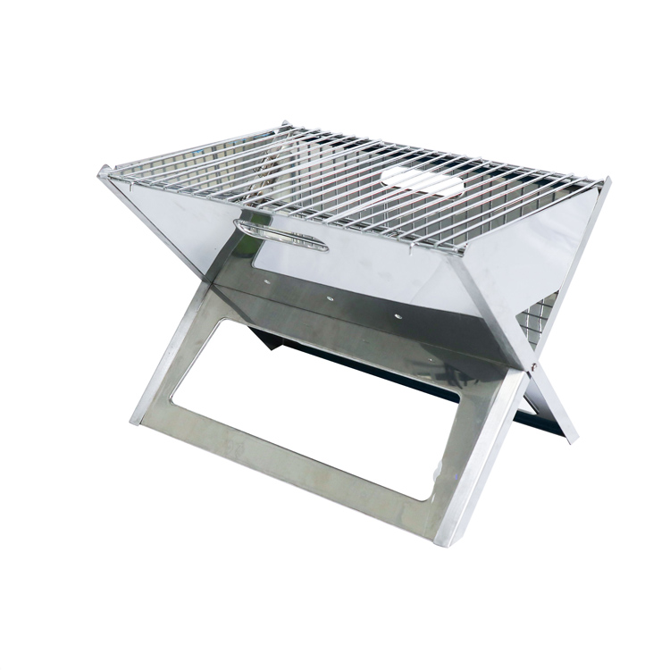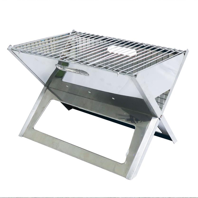 Лесна за носење Кампување надвор од скара од нерѓосувачки челик. Вашето врвно преносно решение за скара за авантури на отворено. Оваа преклопна скара во форма на Х се одликува со издржлива конструкција од нерѓосувачки челик со дизајн што е лесен за носење. Совршен за кампување и активности на отворено, обезбедува практично поставување и сигурни перформанси.