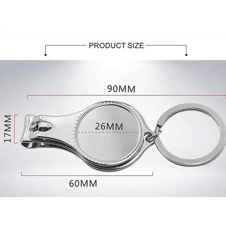 Преклопен отварач за прсти Ножици за нокти Ножици за нокти. Празната површина со сублимација овозможува прилагодени логоа или дизајни, што го прави идеален промотивен подарок или персонализиран додаток.