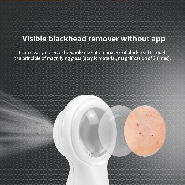 ✅Прилагодлива моќност на вшмукување: Прилагодливи поставки за вшмукување (силни, средни, меки) за да одговараат на различни типови на кожа и ефикасно да ги отстранат црните глави и нечистотиите.