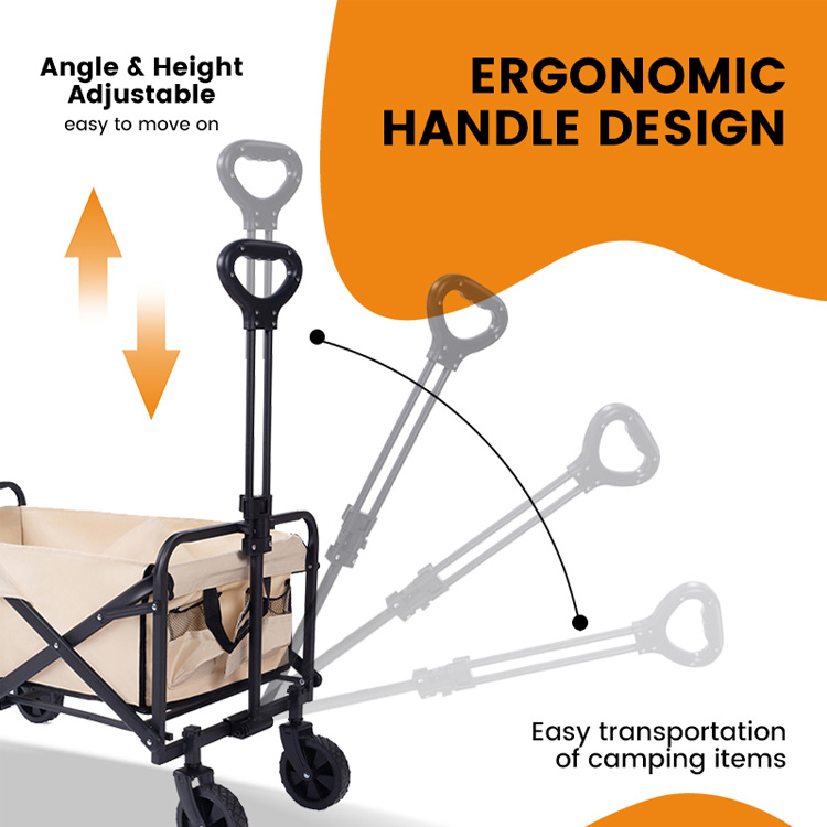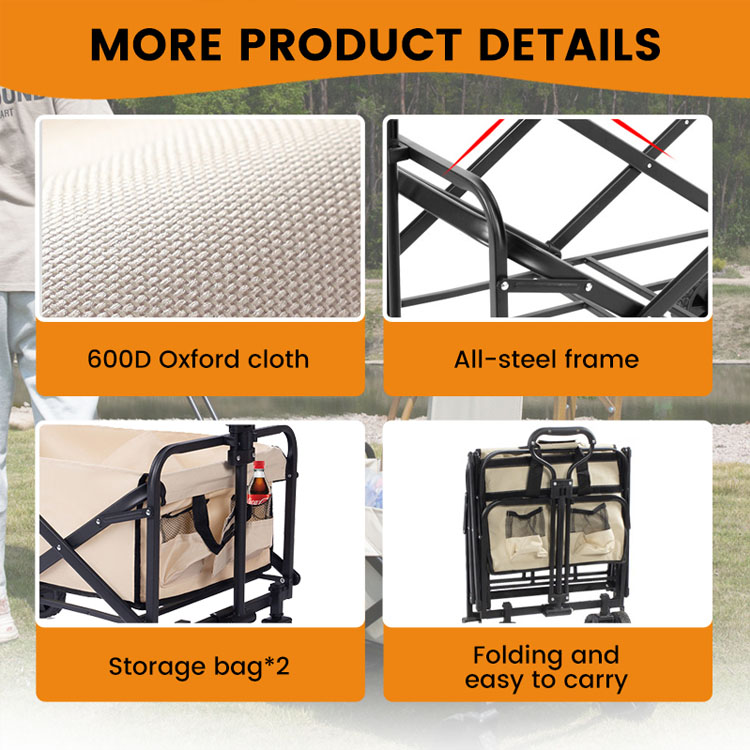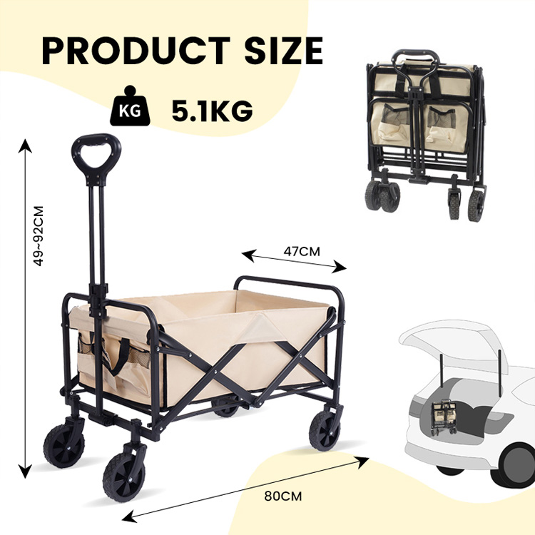 Материјал за железо за вагон со ниска цена што се склопува. Оваа преклоплива количка има издржлива железна конструкција и лесен склоплив дизајн. Совршено за патувања за искачување, излети, излети на плажа, кампување и користење на патека во градина.