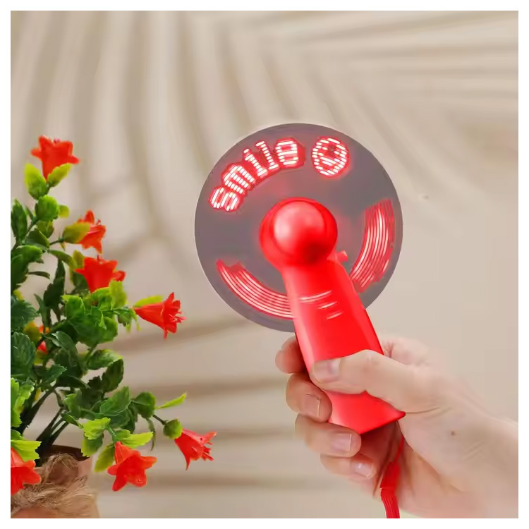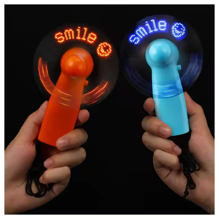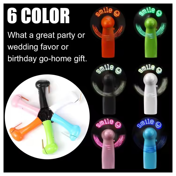 Нов Mini Portable Handy Led вентилатор за прилагодена порака за батерија.Mini пренослив LED вентилатор за пораки— Компактен, напојуван од батерии и приспособлив со лизгачки текст. Обезбедува кул ветре додека ја прикажувате вашата марка или порака со светли LED светла. Совршен за настани, забави или промотивни подароци.