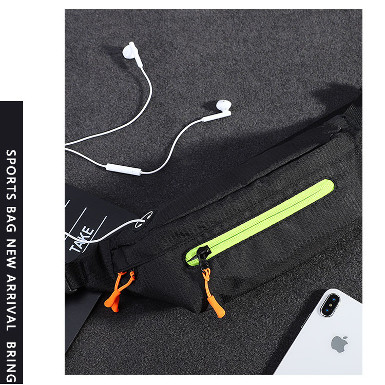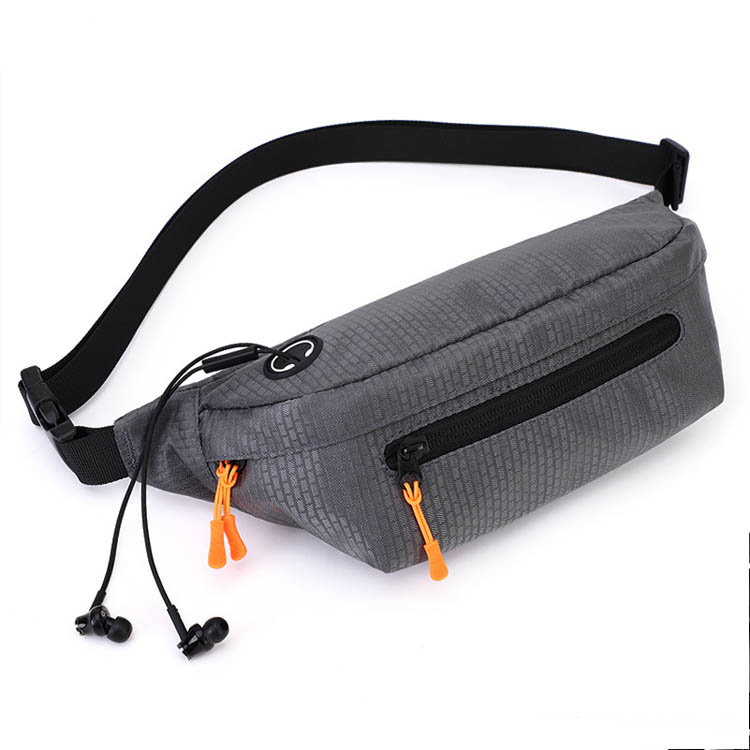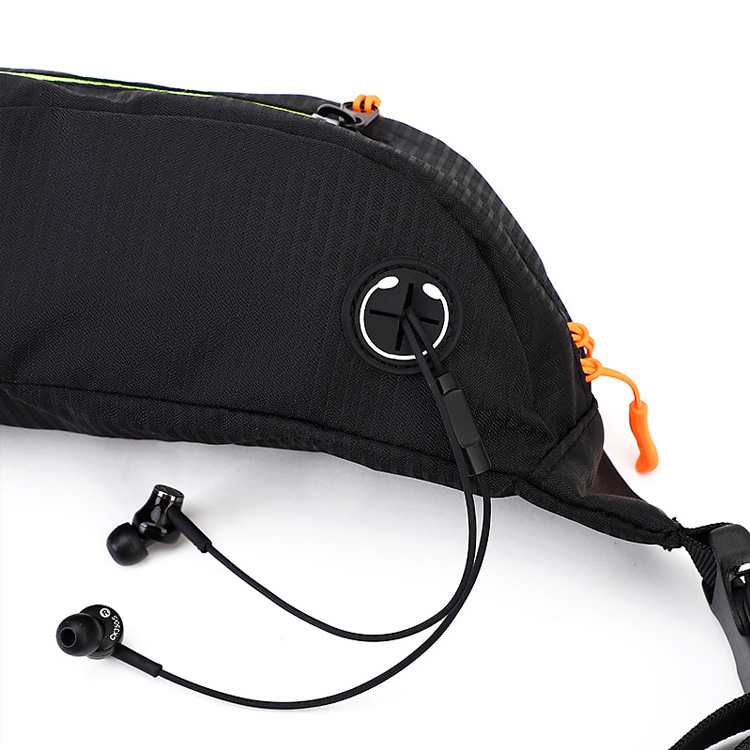 Отворен спортски водоотпорен Лесен чанта за половината. Оваа водоотпорна чанта за половината се одликува со лесен дизајн кој се вклопува блиску со практична дупка за слушалки. Специфично изработен за машки спортови на отворено, обезбедува безбедно складирање и лесен пристап до основните работи.