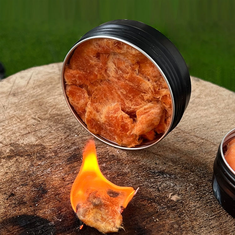 Специјално формулиран со водоотпорен восок и огнена кал на база на минерали, овој шлаг постигнува брзо палење дури и кога е изложен на дожд, снег или висока влажност, обезбедувајќи сигурен оган што започнува во критични ситуации за преживување.