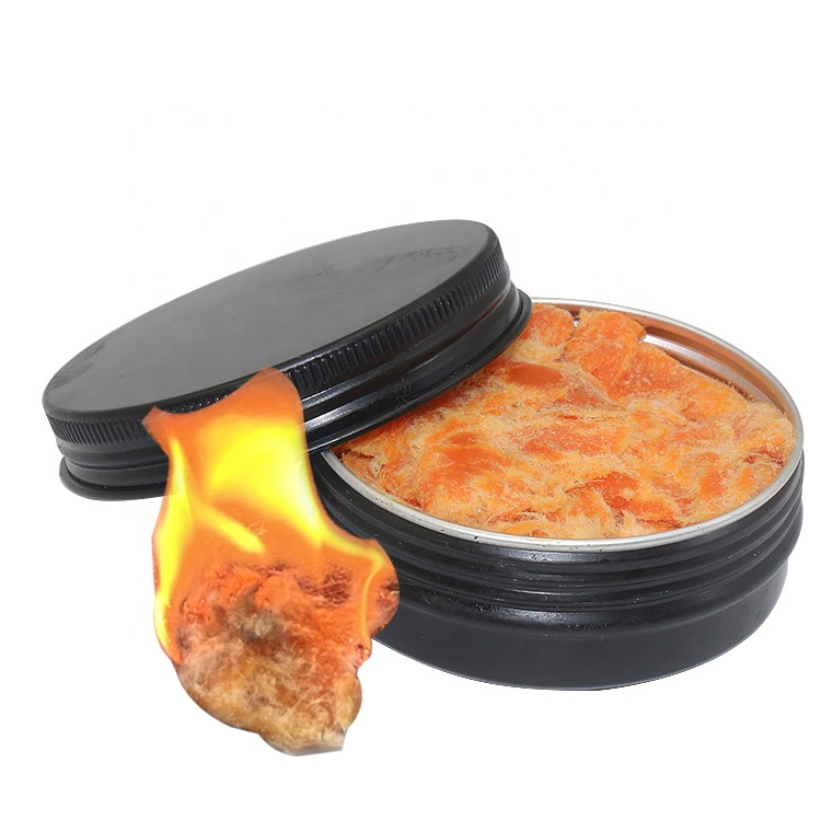 Секое праменче од памук е внесено со восок со висока температура и глина отпорна на оган, создавајќи одржлив пламен кој трае 3-5 минути - значително подолго од обичниот таван - обезбедувајќи доволно време за да го поставите вашиот камперски оган.