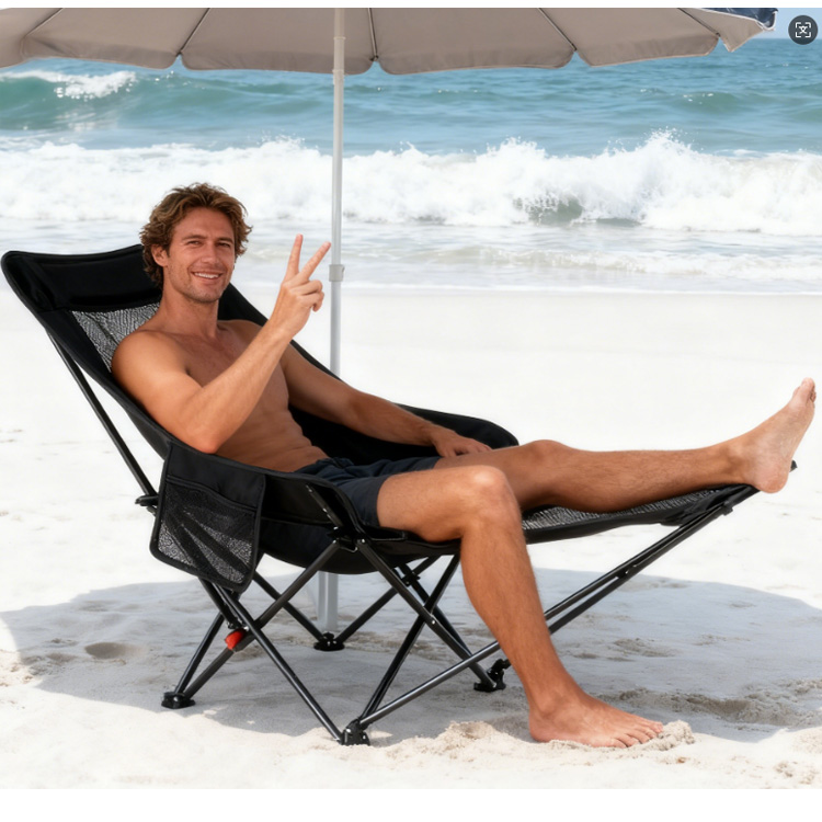 Вградениот потпирач за нозе со повеќе делови без напор се проширува за да обезбеди целосна поддршка на долниот дел од телото, значително ја подобрува циркулацијата и удобноста за време на подолги периоди на релаксација на отворено.