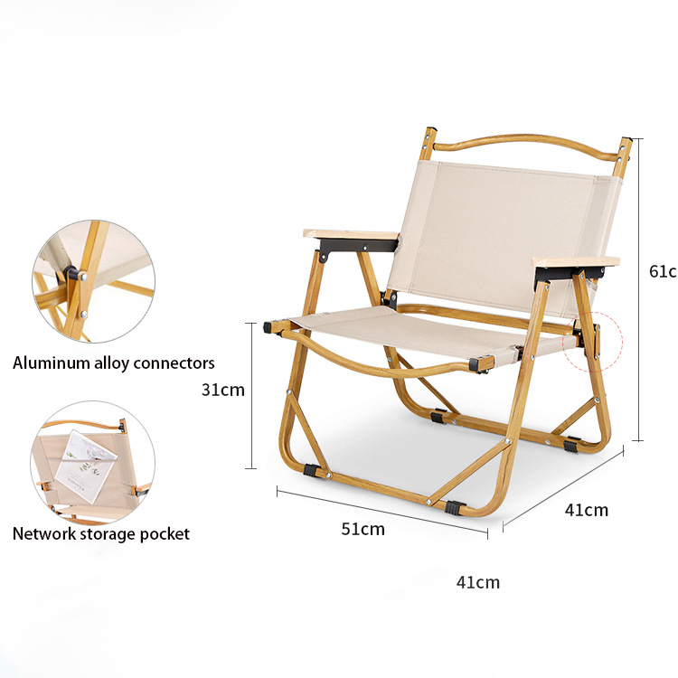 Пренослив патувачки преклоплив надворешен трпезариски стол за кампување на плажа.Вашето Премиерно преносливо решение за седење за внатрешна и надворешна употреба. Овој патнички стол со жешка продажба комбинира лесна преклопна рамка со елегантен челик и акценти од цврсто дрво. Совршен за јадење на отворено, релаксација на плажа и авантури за кампување, дава и стил и издржливост.