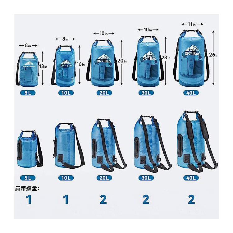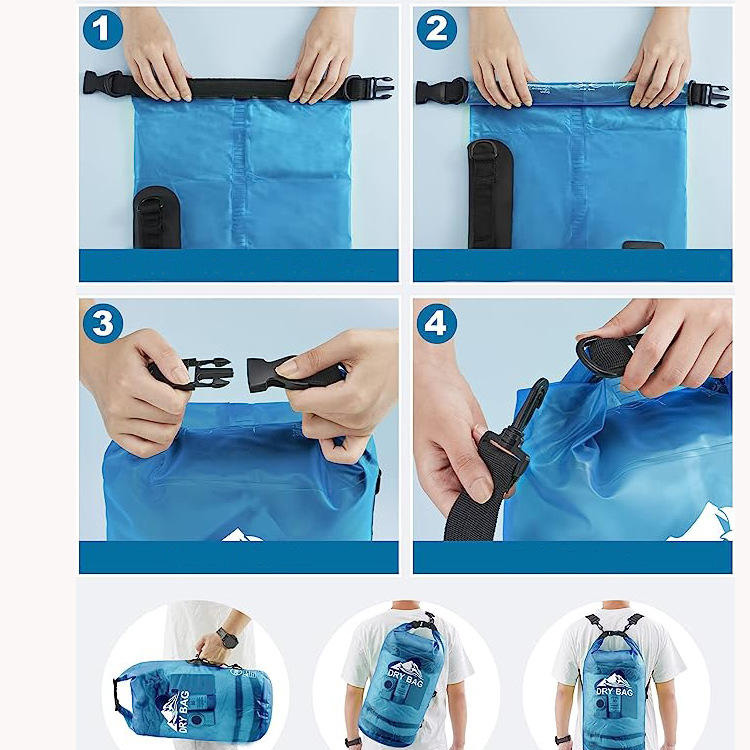 Пренослив врв за ролна, лесна употреба за носење транспарентна сува торба. Вашето иновативно водоотпорно решение за авантури на отворено. Оваа торба за сушење со нов дизајн се одликува со транспарентно затворање на тркалање за лесна идентификација. Со повеќе опции за големини и пренослив дизајн за носење, тој е совршен за пешачење и разни влажни средини.