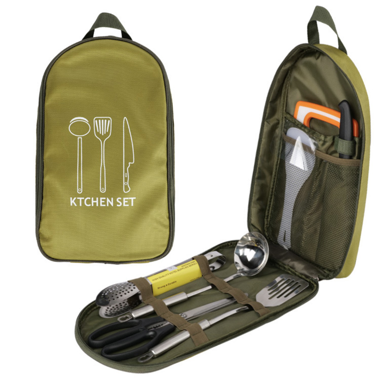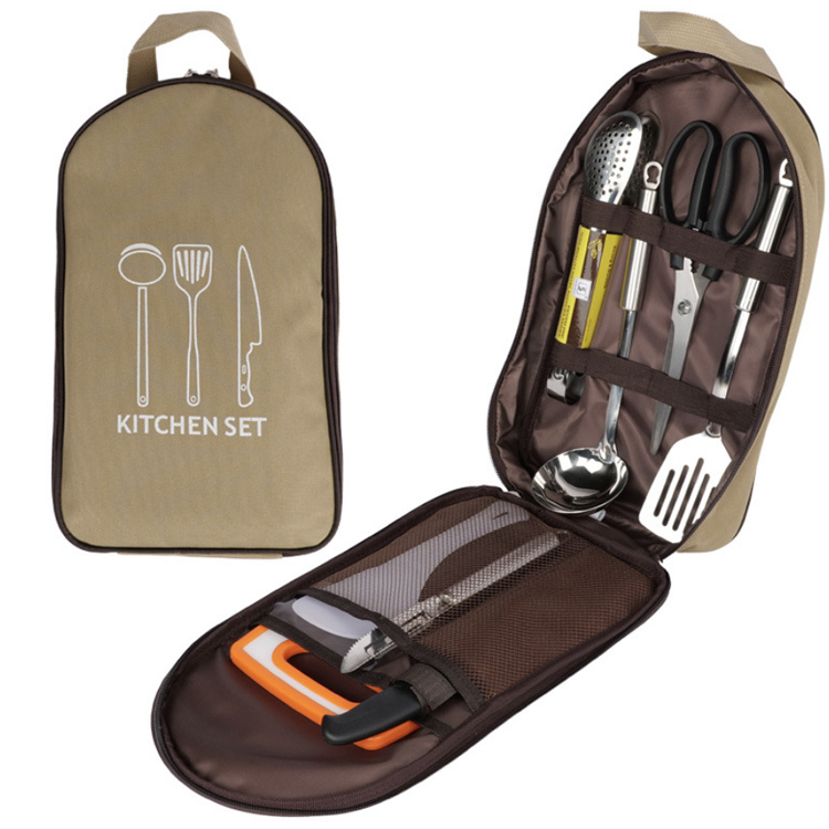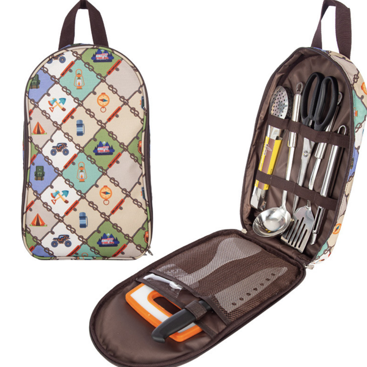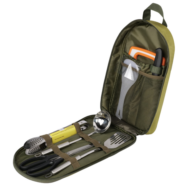 Повеќекратните внатрешни џебови и еластичните јамки ги држат сите алатки безбедно на своето место, вклучително и прибор за готвење, прибор за јадење и мали додатоци, обезбедувајќи ништо да не се изгуби при транспортот.