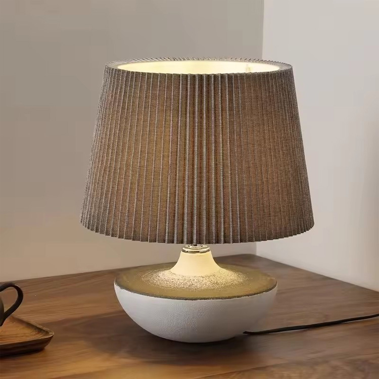 Wabi-sabi спална соба Дневна соба Хотел Ретро грнчарска ламба за маса. Модерен дизајн со текстурирана сенка од ткаенина, совршена за додавање топол амбиент во дневните соби или спалните соби. Издржлива керамичка основа со минималистичка естетика. Идеален и за современ и за класичен ентериер.